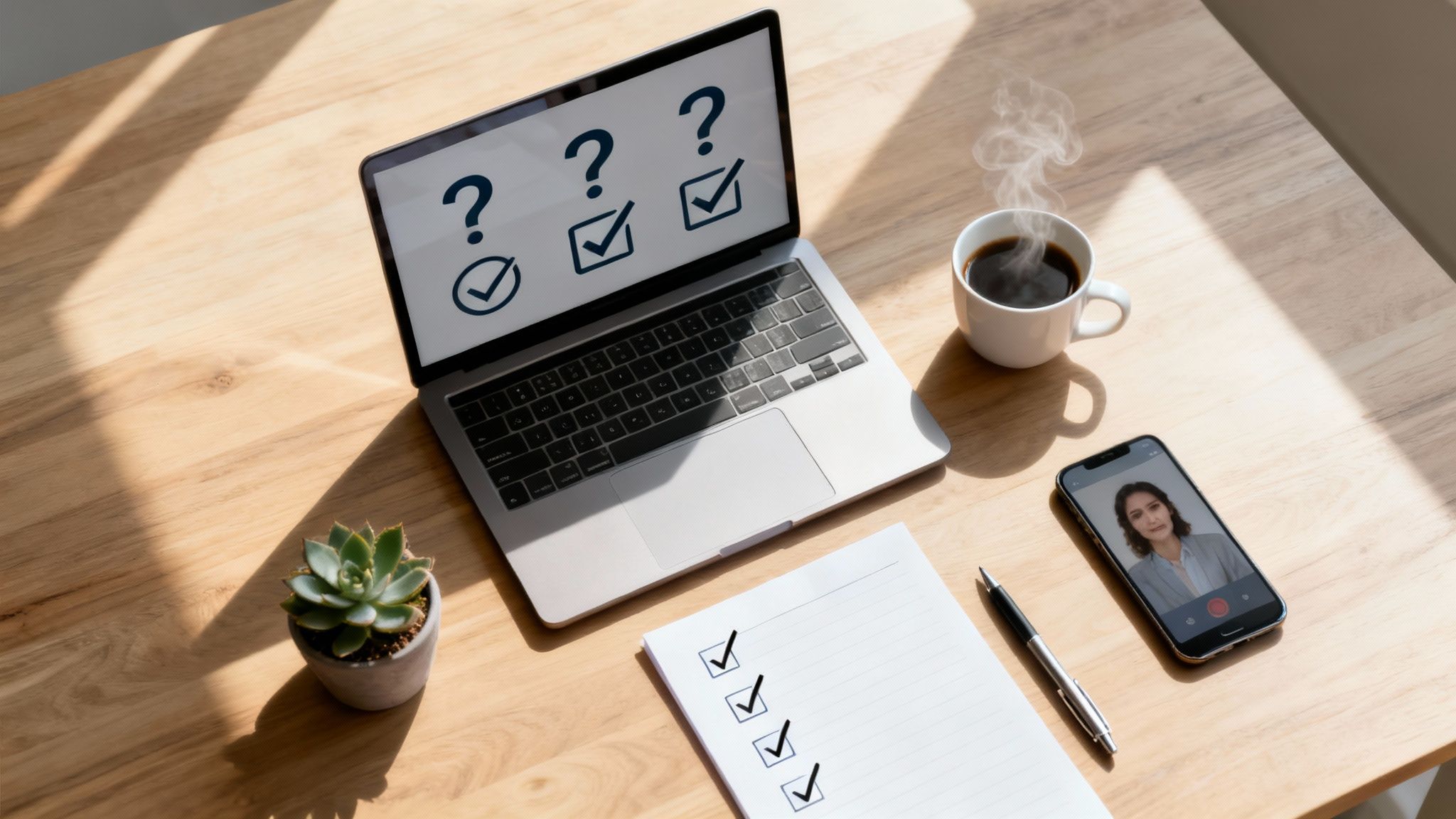 Set up a professional home office space with good lighting and minimal background distractions. Test your technology beforehand and practice answering common remote work questions.